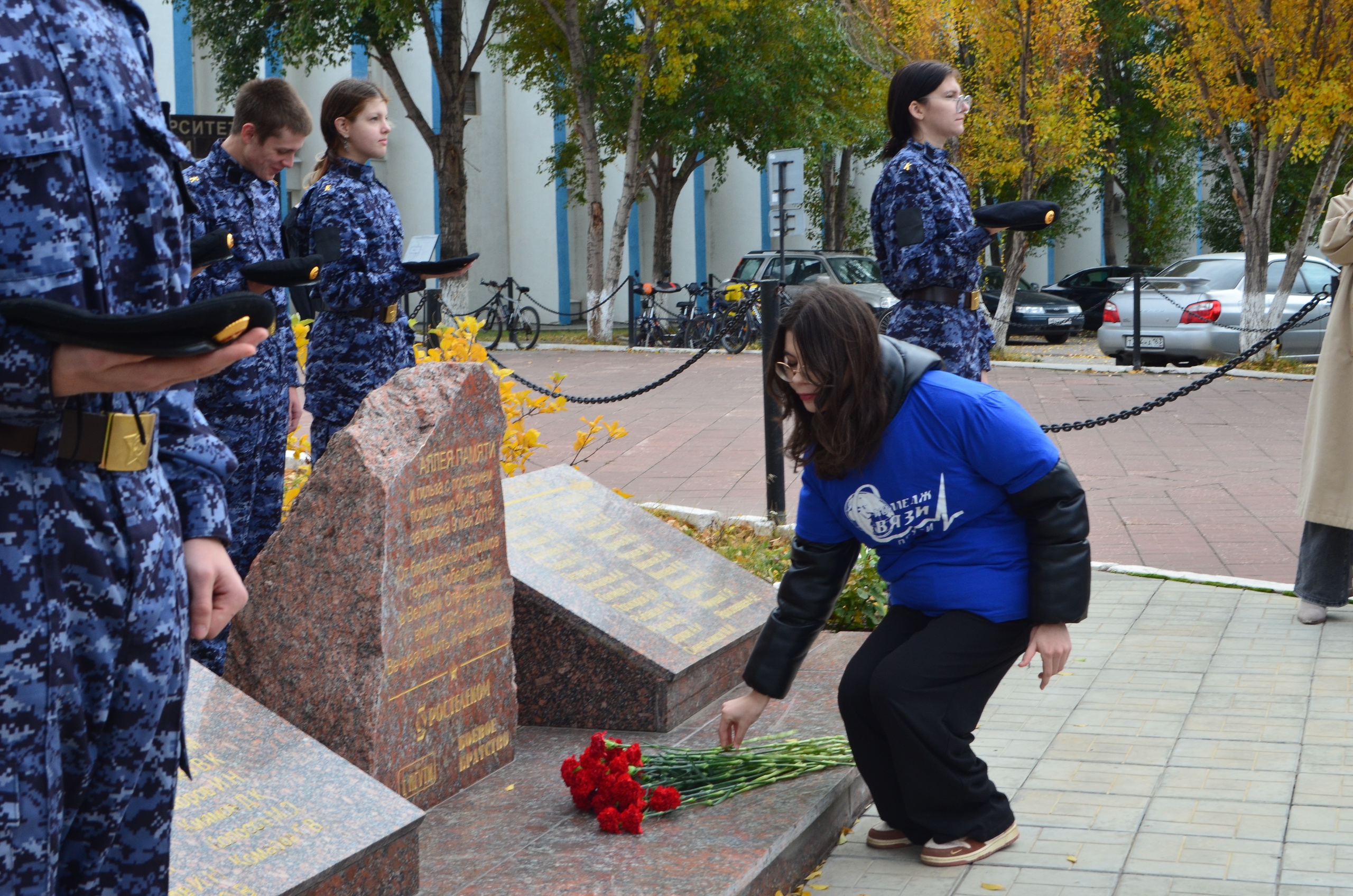 Затем преподаватели и студенты учебных групп колледжа, а также волонтеры волонтерского отряда Колледжа связи ПГУТИ «Добро» возложили цветы к Мемориалу.